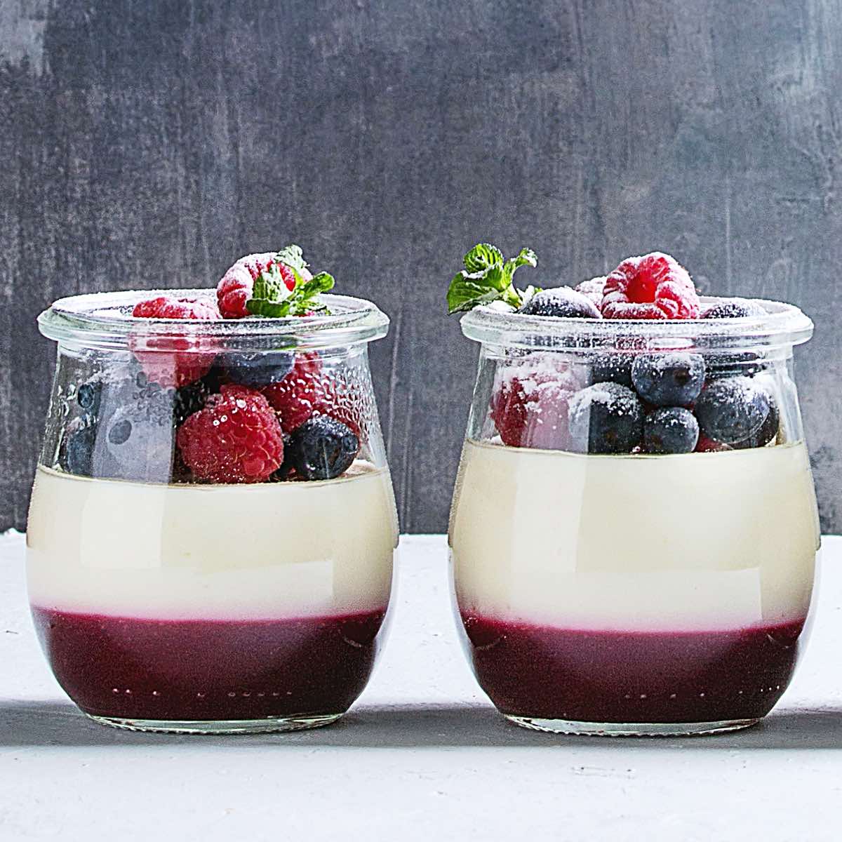 - Die Creme abwechselnd mit dem Obst oder den Keksstückchen in die Gläser schichten. Tipp: bei den Keks-Varianten für den Knusperfaktor direkt vor dem Servieren noch Keksstücke darüberstreuen.