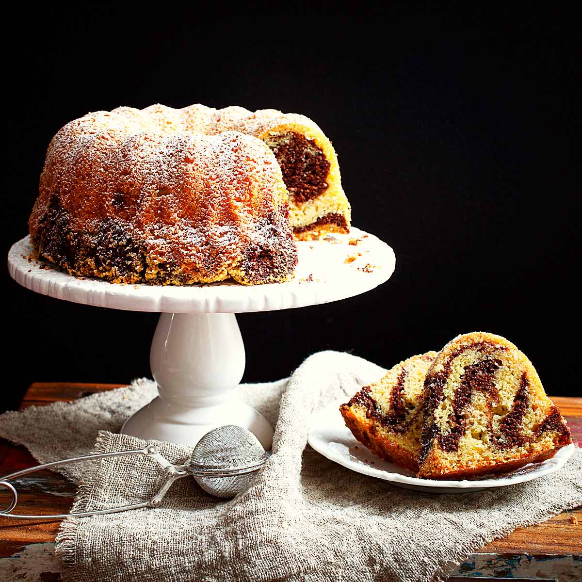 Marmorkuchen ist ein klassischer Rührkuchen aus hellem und dunklem Teig.