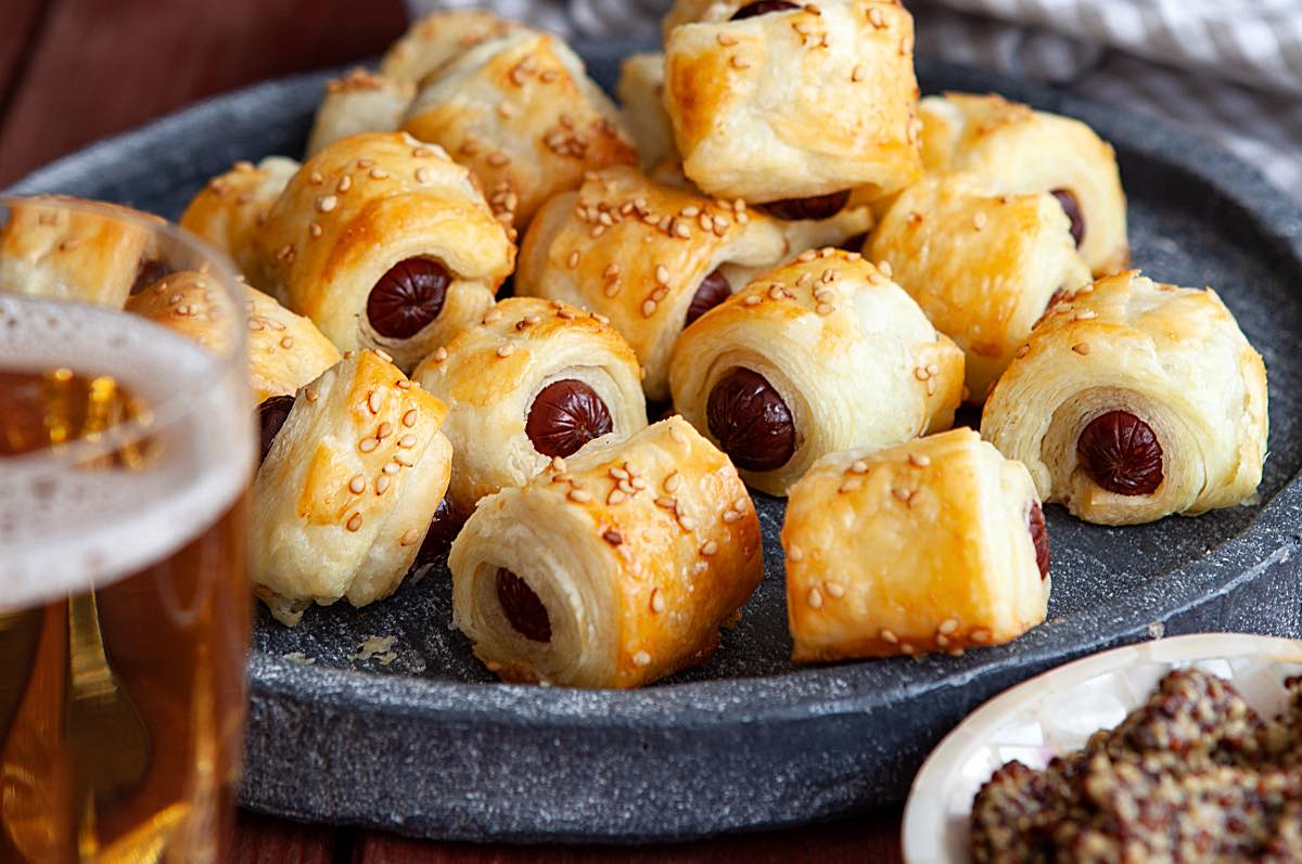 Würstchen im Schlafrock sind die kulinarische Mischung aus Kindheit, Partybuffet und „Ich habe gerade nichts im Haus ausser einem Glas Würstchen und einem TK-Blätterteig“.